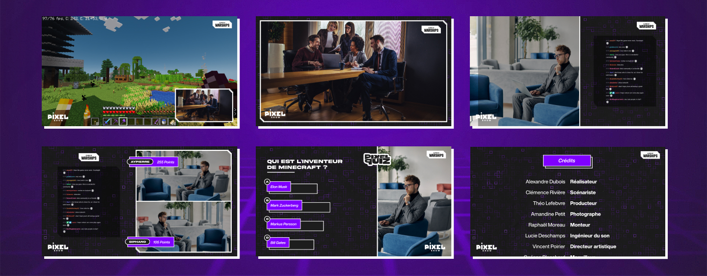 "Pixel Show est une émission en direct sur Twitch qui plonge dans l'univers fascinant de Minecraft, tout en étant une véritable plateforme d'échange pour la communauté française. Animée par des passionnés, l'émission offre chaque mois des news sur l’univers du jeu, sa communauté, ses événements... Ne manquez pas le coche !"
